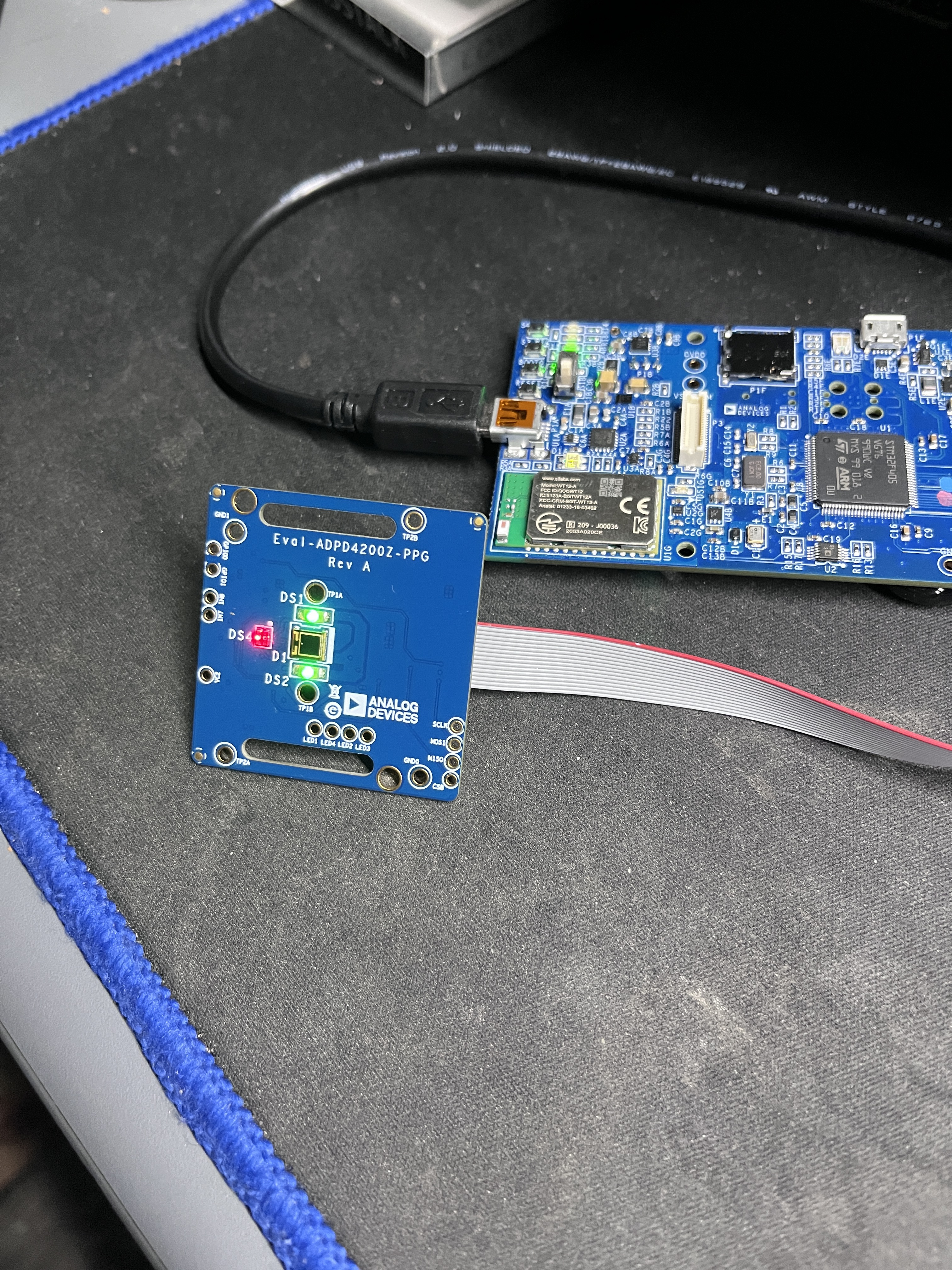 Silicon Labs XG24-EK2703A 보드에 ADPD4200 sensor 보드를 연결해서 센서 테스트 환경을 구축